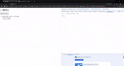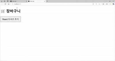 - "React ํฐ์ ์ธ ์ถ๊ฐ"๋ฒํผ์ ๋๋ฅด๋ฉด ์ฅ๋ฐ๊ตฌ๋์ ์ํ์ด ์ถ๊ฐ๋๋ค.