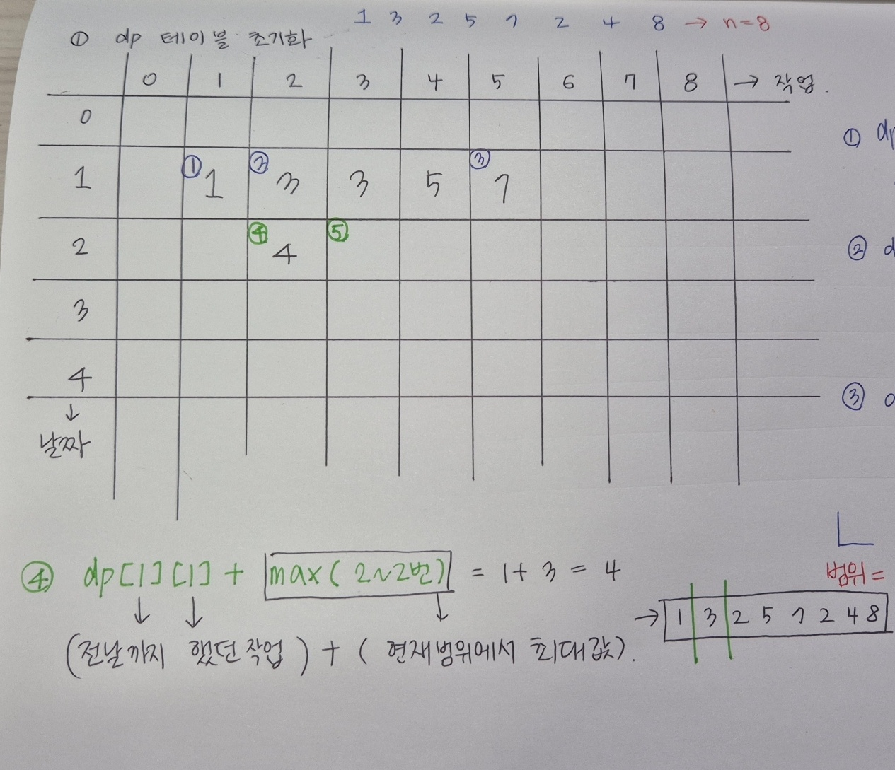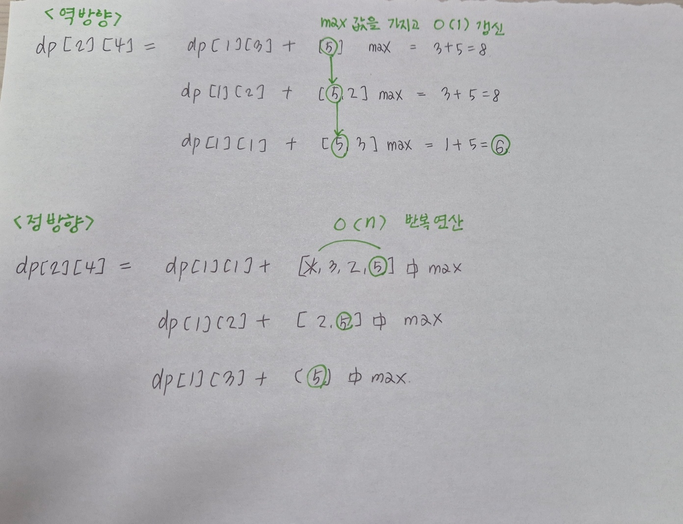 ์ด๋ฏ๋ก ๋ฒ์๋ฅผ ์ฒ์๋ถํฐ ๋๊น์ง ํ์ง ์๊ณ , dp[i][j-1]์๋ ์ง์ ๊น์ง์ ์ต๋๊ฐ์ด๋ฏ๋ก ์ง์ ๊ฐ๊ณผ ์ต๋๊ฐ์ ๋น๊ต ๊ฐฑ์ ํฉ๋๋ค.