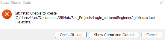 fatal: Unable to create 'C:/Users/User/Documents/GitHub/Self_Projects/Login_backendBeginner/.git/index.lock': File exists.